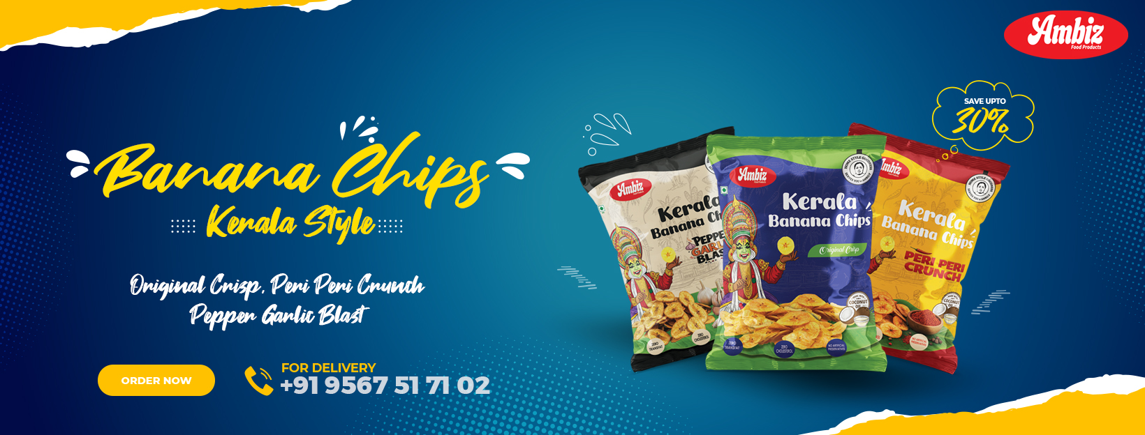 Free Shipping Above Rs.499/- Only Made in Kerala Premium Quality Combo Packs At Lowest Price Best Selling Products Trending Products Customers Reviews ★★★★★ 5/5 "Authentic taste, just like homemade!" The Original Chips reminded me of my childhood in Kerala. Perfectly crisp and not too oily. Highly recommended! Anju Suresh, Delhi Limited Time Offer: 10% Off on Peri Peri & Pepper Garlic Chips!Bold Flavors. Big Savings. Only at Ambiz! Shop Now ★★★★★ 5/5 "Kerala roots, global taste!" Pazhampori and banana chips are everyday snacks here, but this Peri Peri version surprised me...absolutely delicious. Worth trying Nikhil, Cochin